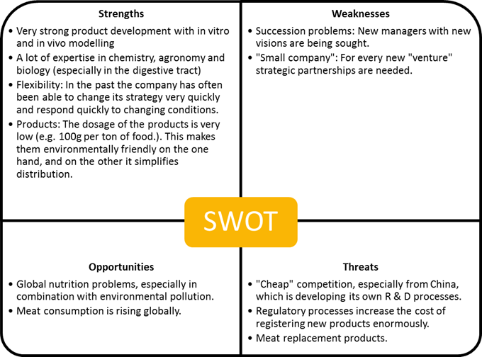 You have applied to be the CEO of a small Swiss chemical company, "ANO" (Animal Nutrition Optimisation: the name has been changed). The Head of Development shows you around the development lab. He demonstrates flames, colours, and minerals with beautiful contours. You are struck by his impressive display, and the Head of Development´s enthusiasm is infectious. His greatest pride is a small box full of equipment, including 100 test tubes. He says: "We can do quite a bit here; all agents (he means molecules and materials) can be simulated for their effectiveness in the intestinal tract." He adds: "Here you only see the in vitro part, but the in vivo experiments are also important and they provide us with appropriate feedback to optimise the in vitro model ... and everything is stored in this one box."